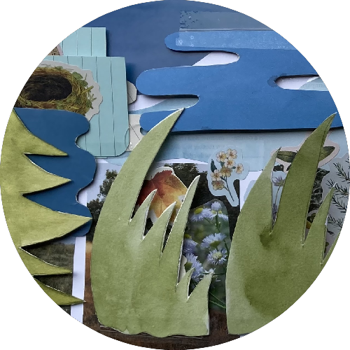 At home, cut shapes from paper to represent plants, animals, weather phenomena, land formations, or structures in your landscape. You can use whatever is on hand, including materials you foraged, drawings, mixed media, stickers, or magazine clippings.